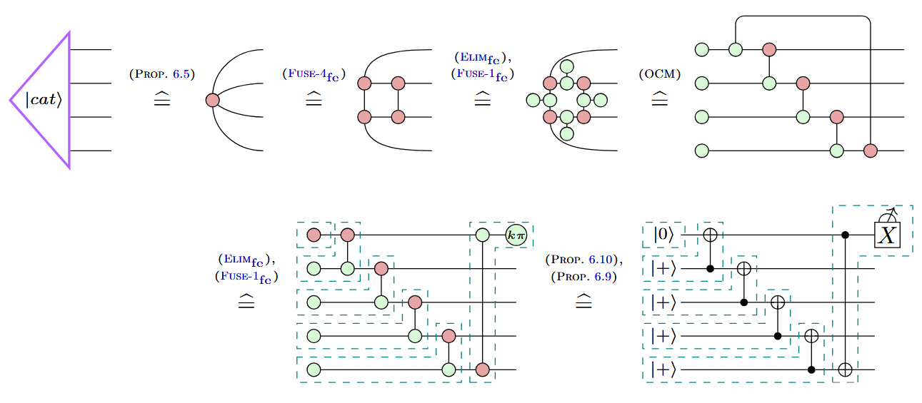 ...give us a simple dictionary between QEC codes and ZX-diagrams, e.g. the GHZ code can be fully represented as: